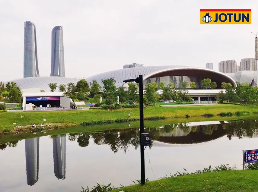 打破人們對(duì)于現(xiàn)代建筑冷冰冰的傳統(tǒng)理念,用獨(dú)特的月牙懸挑結(jié)構(gòu)創(chuàng)造張力之美,以萬鈞鋼之重造就灞河之濱輕盈的月光之美。佐敦以豐富的鋼結(jié)構(gòu)防腐涂刷業(yè)績(jī)和專業(yè)的防腐防火長(zhǎng)效保護(hù)提案,被選定為9萬噸鋼結(jié)構(gòu)的防腐防火涂料供應(yīng)商,特選用佐敦膨脹型防火涂料與氟碳面漆組合,為2萬多噸的外露屋蓋鋼桁架保駕護(hù)航,實(shí)現(xiàn)“懸浮彎月”的建筑設(shè)計(jì)效果。