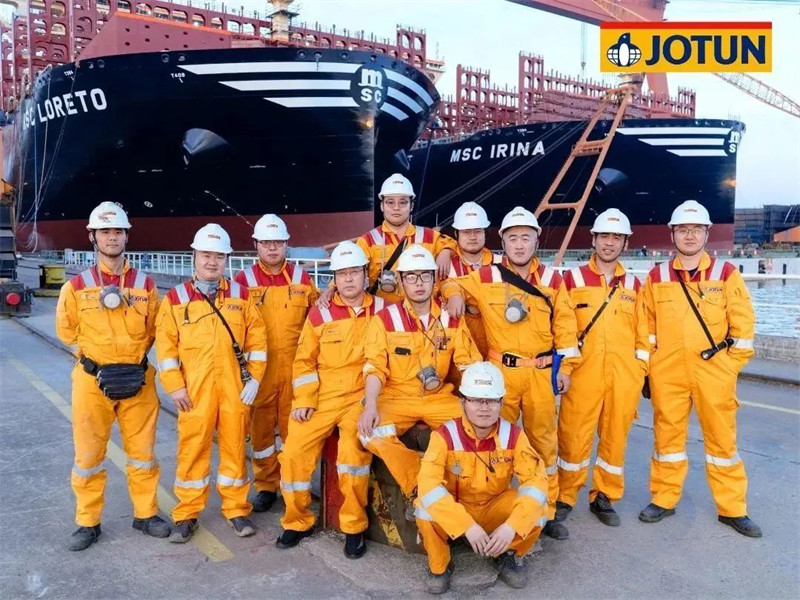 因船型巨大,佐敦為該系列船型派駐了多支由高級(jí)技術(shù)服務(wù)領(lǐng)頭的檢驗(yàn)小組,HPS防污漆統(tǒng)噴時(shí),有多達(dá)6名佐敦涂裝顧問(wèn)在現(xiàn)場(chǎng)提供技術(shù)服務(wù)。